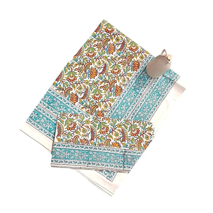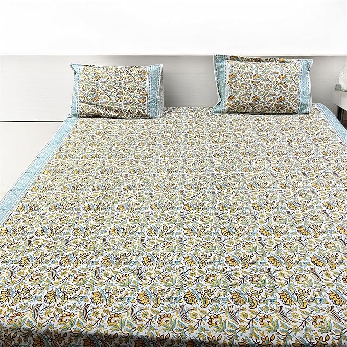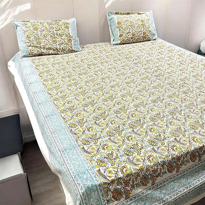 ハンドブロックプリント コットンベッドシーツ|洗濯可能・軽量&通気性|90×108 / 108×108