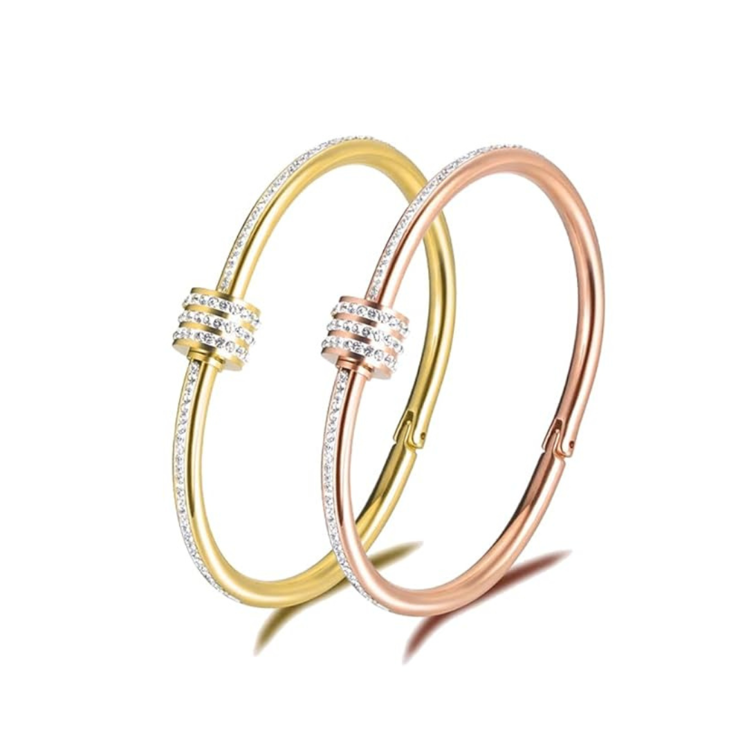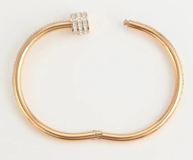 女性用ブレスレット|スタイリッシュなバングル|調整可能・変色防止|ローズゴールドカラーのカダ|ステンレススチール製カフブレスレット|アクセサリー&ギフトセット