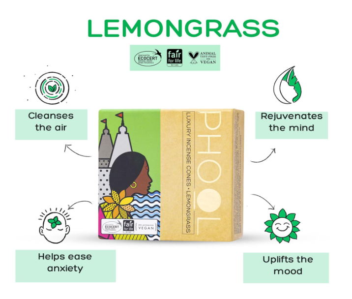 Phool ティーツリー&レモングラス インセンスコーンは、本格的なアーユルヴェーダ技法を用いて、アロマセラピーによる癒しを促します。 - 薬効とリフレッシュ効果:
