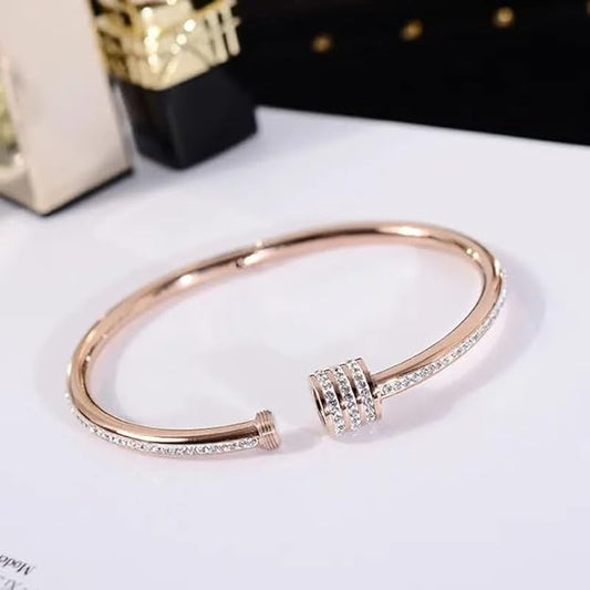 女性用ブレスレット|スタイリッシュなバングル|調整可能・変色防止|ローズゴールドカラーのカダ|ステンレススチール製カフブレスレット|アクセサリー&ギフトセット
