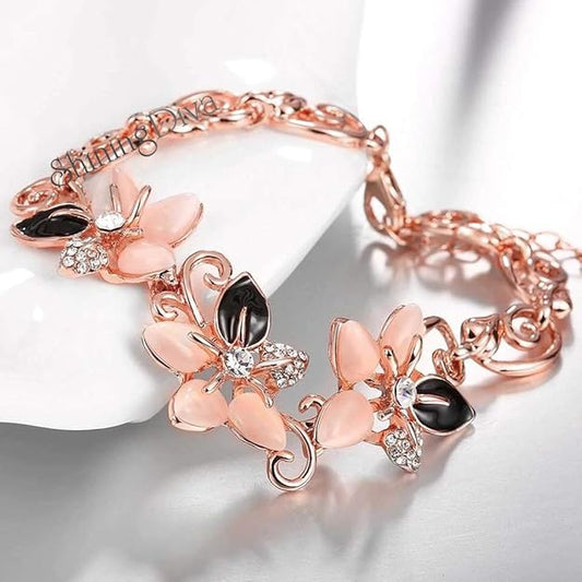 女性と女の子のためのブレスレット|ローズリーフ型 シルバー&ローズゴールドメッキ クリスタルブレスレット|誕生日・記念日ギフトに最適