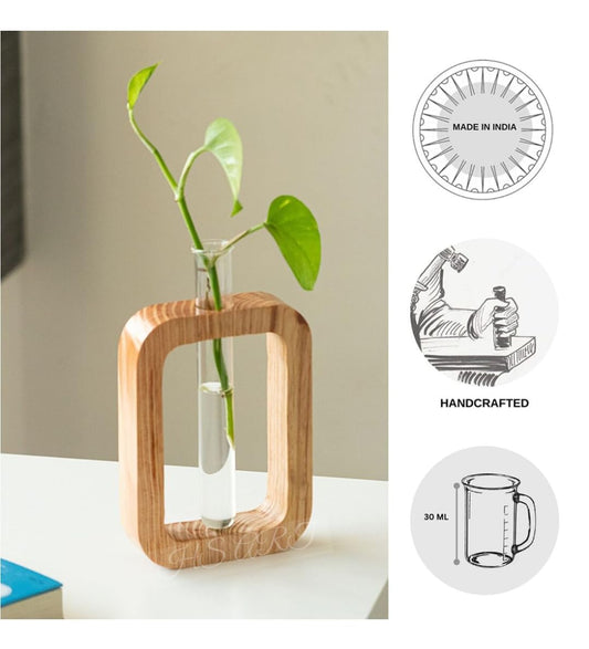 ガラス試験管の室内装飾プランター(木製スタンド付き花瓶)