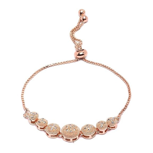 レディース&女の子用 プルチェーン付き 調節可能 モダンデザイン ローズゴールドメッキ真鍮製 アメリカンダイヤモンド ブレスレット ジュエリー 2本セット