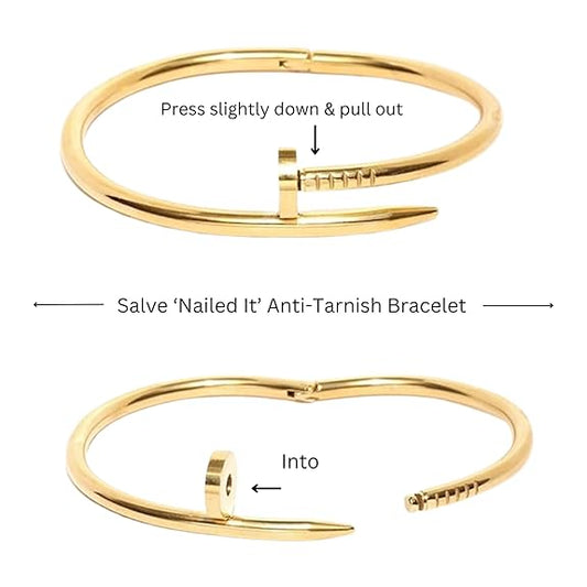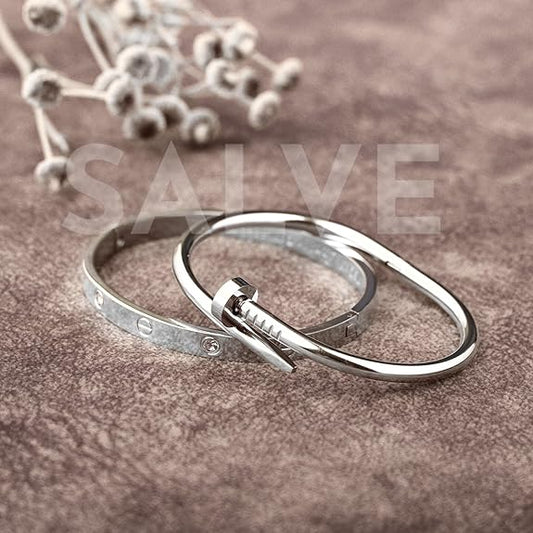 ステンレス製 コンビ2点セット:レディース用アンチターニッシュ・ラブバンド&ネイルカフ ハンドブレスレット|調整可能なカダバングルセット|バレンタインデーに彼女へのギフトにも最適