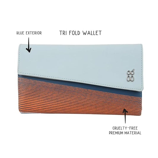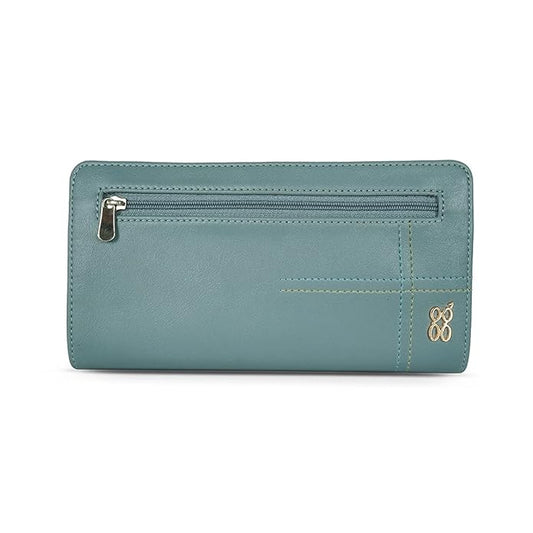 レディース大容量ブルー長財布|女性用スタイリッシュパースバッグ|カード・紙幣ホルダー|フェイクレザー|6ヶ月保証|クルエルティフリー素材|BBW-5