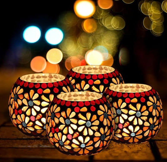 パープルツリー ガラスモザイク ティーライトキャンドルホルダー | 4個セット