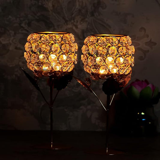 新作プレミアムクリスタルローズ真鍮キャンドルホルダー(2個セット)