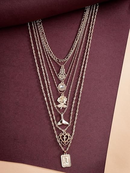 ファッション最新 多層チェーン スタイリッシュ ゴールド ウェスタンネックレス 結婚式用ジュエリー 女性・女の子用