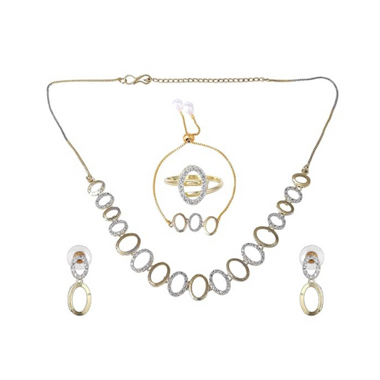ゲヘナ ファッションジュエリーセット:チョーカーネックレス、イヤリング、ブレスレット、リングのコンボ|女性向けゴールド&ロジウムメッキ|スタイリッシュでエレガントなアメリカンダイヤモンドジュエリーセット